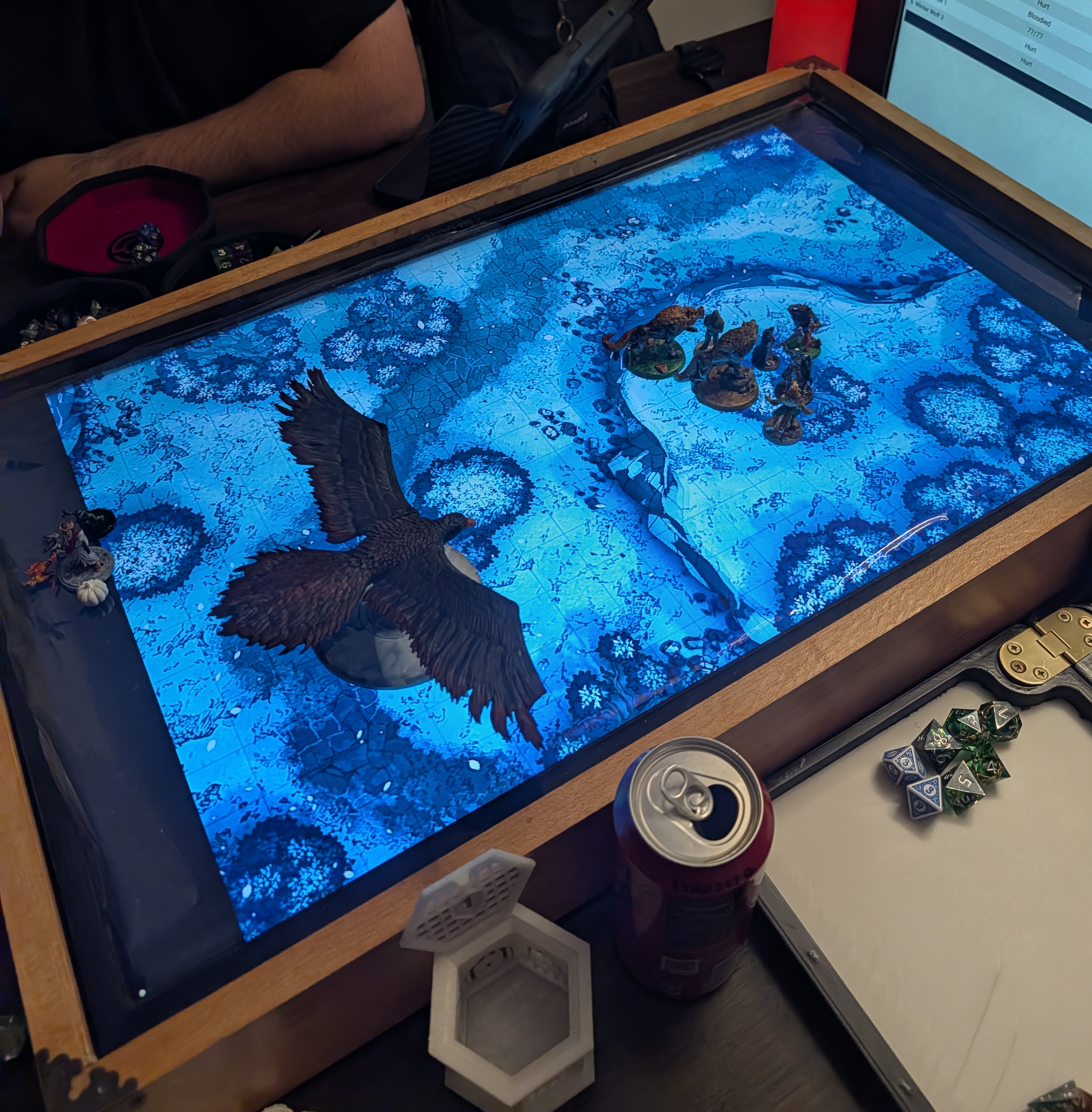 - Scene Switching (OBS): I used OBS to seamlessly swap the player-facing screens between the different maps. I set up hotkeys for the Bridge, the Nest, the Ravine River, and the Ravine Forest. When the Roc dropped Homunculus, I didn't pause to load a map—I hit a hotkey, the scene wiped, and the players were instantly staring at a freezing river.